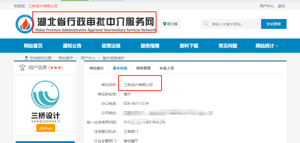 由于业务需要,我们昨天入驻了湖北的中介服务平台,来承接湖北的一些业务。