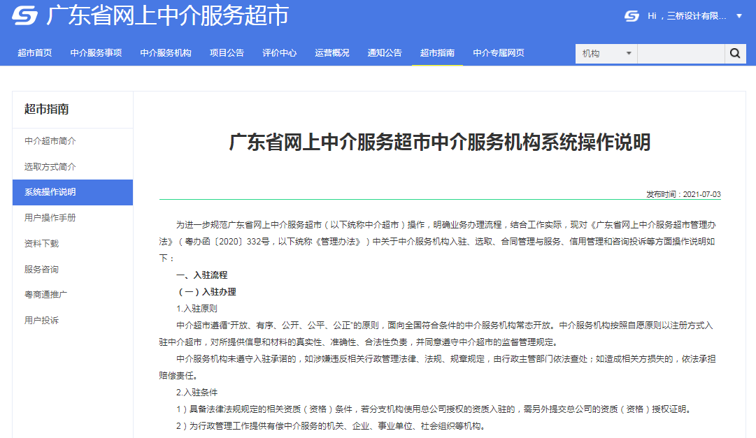 我院在广东省网上中介服务超市成功录入基本资料,待法人实名核验后完成最终的注册登记。“一个平台、全省共用,一地入驻、全省通行,一处失信、全省受限,一体管理、分级使用”,为我院准备全面进入广东省市场做好充足的准备。